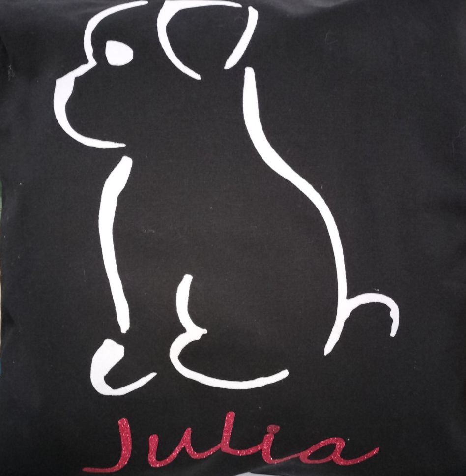 Possibilité de choisir un coussin noir ou naturel, le motif et le nom souhaité dans différentes couleurs de paillettes